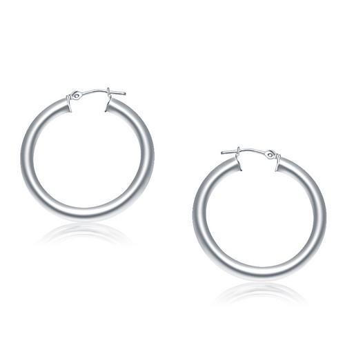 These timeless hoop earrings are crafted in 14k white gold and measure 30 millimeters in diameter, featuring a snap lock backing.