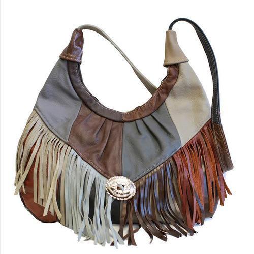 The leather fringe in the front gives it a fun back to the 60's look. The unique multi color patches help to make this purse match with any outfit you would choose.